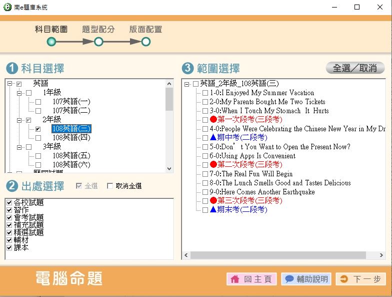 108學年下學期 國中命題光碟 南一版 英語科 1-3年級 題庫光碟(1年級是舊課綱)