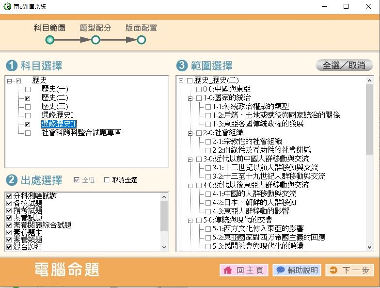 111學年下學期 高中命題光碟 南一版 歷史(一、二、三、選修I、選修II、跨科整合試題)(108課綱) 題庫光碟