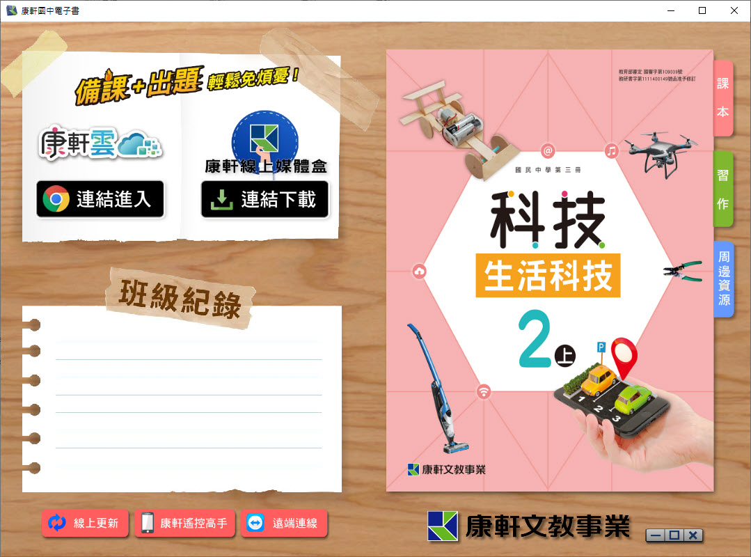 112學年上學期 國中 康軒版 生活科技電子書 2年級(含課本、習作含解答、教學資源)教學光碟