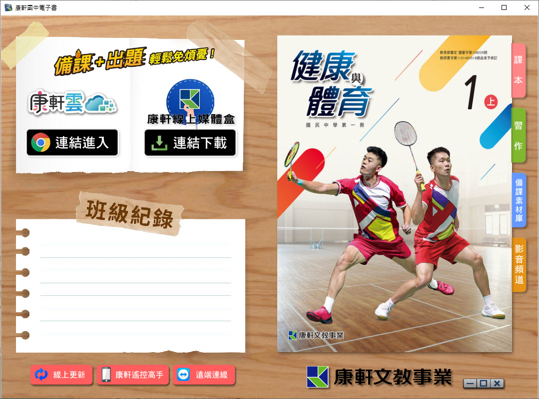 112學年上學期 國中 康軒版 健康與體育電子書 1年級(含課本、習作含解答、教學資源)教學光碟