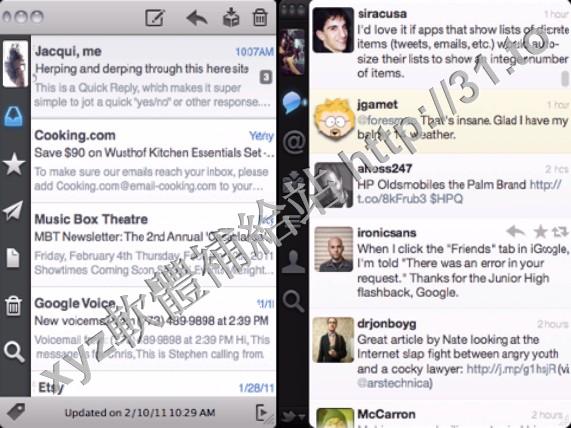 郵件。快速預覽郵件內容。可以在新窗口中閱讀或打開右面板查看郵件,中享受Sparrow的全部便