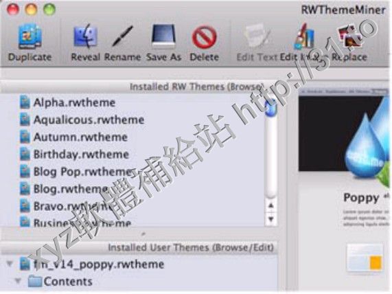 RWThemeMiner is a RapidWeaver theme editing assistant.