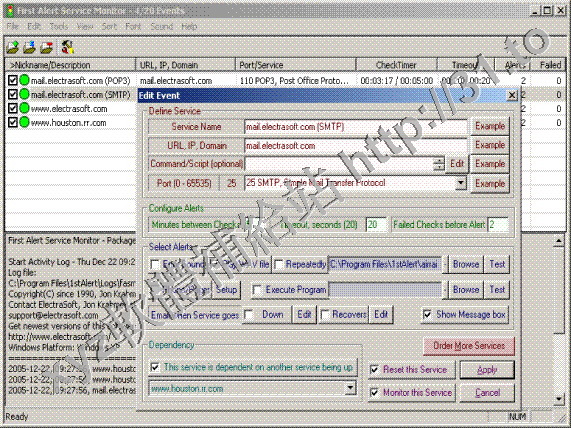 Internet 服務,當這些服務掛掉再重啟時,First Alert Service Monitor 能通過發送